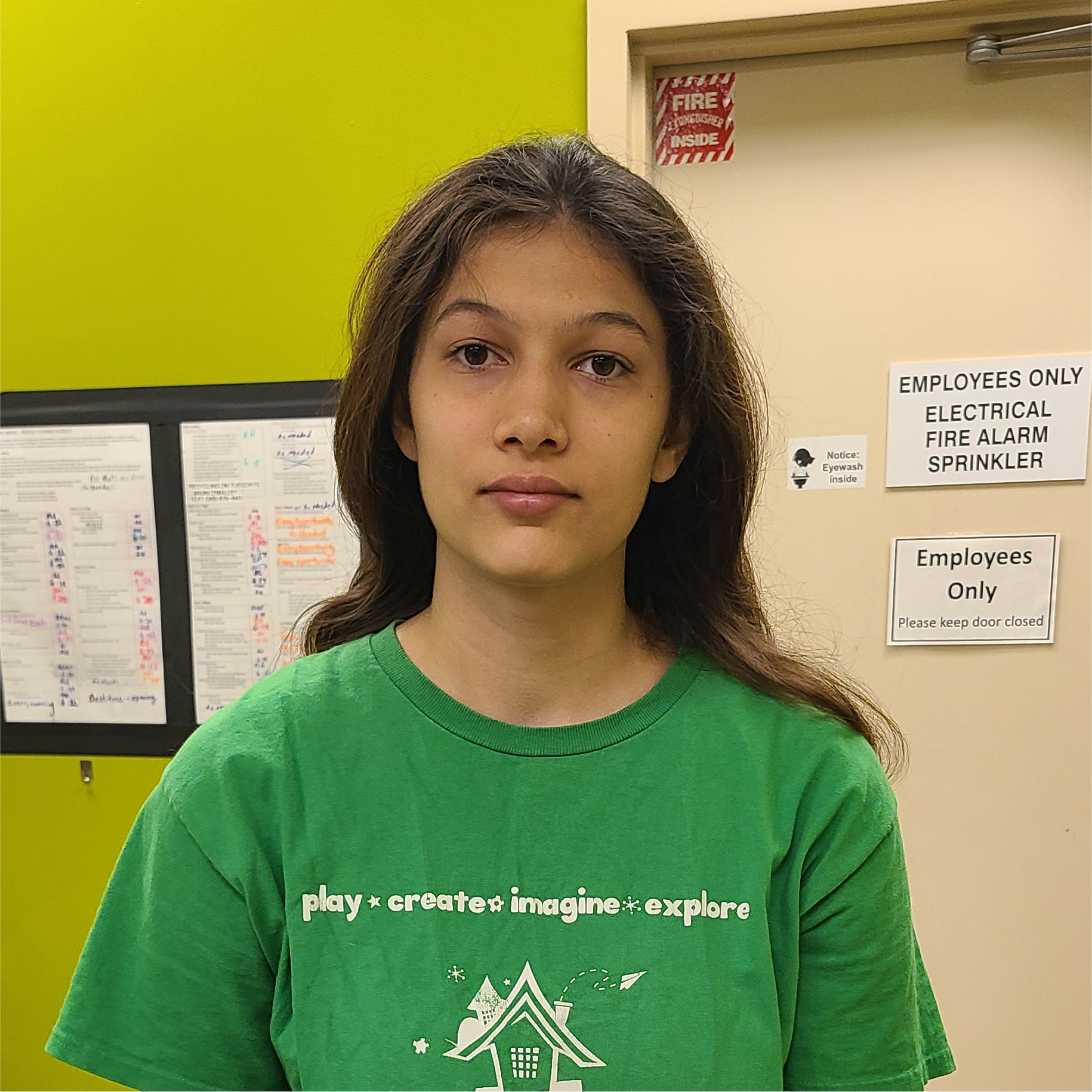 Ezmarelda grew up in a suburb near Chicago, Illinois. Her favorite movie is A Silent Voice. She likes any shade of red. Currently, she has three cats and one dog. Ezmarelda’s favorite exhibits at the PlayHouse are the Chicken Coop and Motion Commotion, specifically the canon.