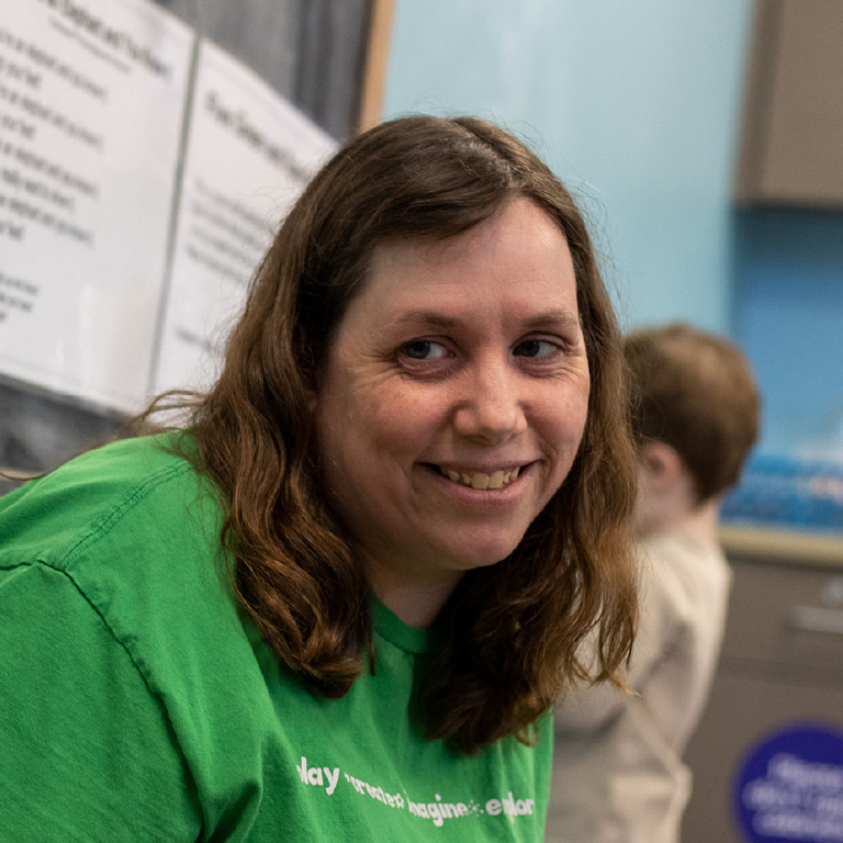 Ashley grew up in the Peoria area. She is a tabletop gamer. She will burst out into song at any given time. Currently, she has two loveable dogs. Ashley’s favorite exhibit at the PlayHouse is Fossils Rock.